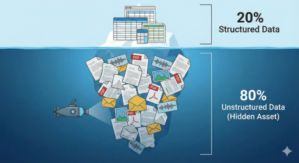 しかし、生成AIはこの「捨てられていた8割」を宝の山に変えます。